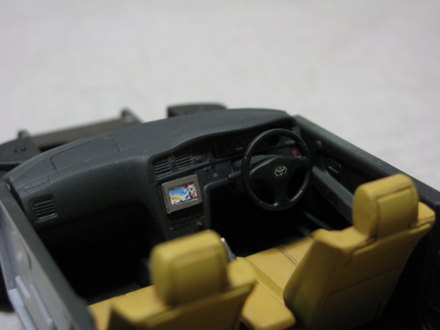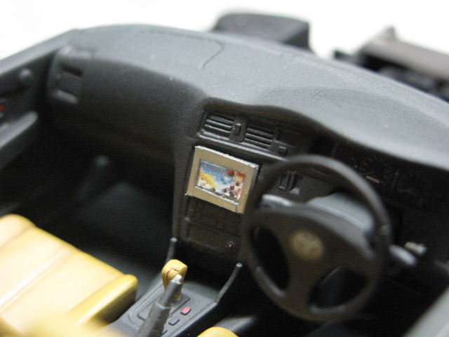 このあと、クリアー流し込んだりセロテープ貼ったりして液晶ガラスを再現される方もいますが、映ってる状態のモニターってあんましツヤがないんですよね・・・。